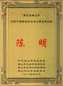 熱烈慶祝我公司執(zhí)行董事陳明同志,榮獲“優(yōu)秀中國(guó)特色社會(huì)主義事業(yè)建設(shè)者”稱號(hào)